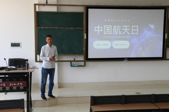 在主题讲座中,夏老师首先简明扼要的讲述了中国航天事业浪漫的发展历程。以天为盘,以星做子,“神舟”往返、“天宫”建成、“嫦娥”探月、“天问”携“祝融”探火……一系列耳熟能详的航天器命名中,读懂了千年问天的中国式浪漫。中国航天事业的发展历程既展现了中华文明的源远流长和深邃的人文关怀,又彰显着当代中国人探索、进取、求真的科学精神和更加坚定的文化自信。随后,夏老师介绍了中国航天科技在国家政治、经济、教育等方面的应用情况。太空中,颗颗中国明“星”熠熠生辉——不论何方,“北斗”帮你导航;足不出户,“风云”为你预知天象;地处偏远,通信卫星助你联通世界。不仅“顶天”,更要“立地”。航天技术正走进千家万户,赋能千行百业。最后,夏老师带领师生共同致敬在这段岁月中涌现出的航天英雄以及背后默默付出的航天工作者,如“长征十一号”总指挥李同玉、“月宫一号”总设计师兼首席科学家刘红,他们用赤子之心点亮中国航天梦想,在自己的岗位上闪亮出人的光芒,一代代航天人踔厉奋发,一批批报国者以梦为马。
