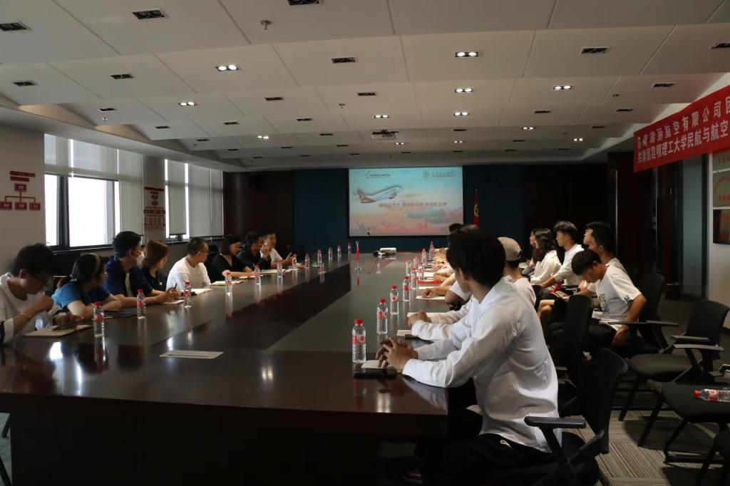 首先,苏南瑞丽航空有限公司飞机维修工程部党总支副书记林正兰和运行控制党支部副书记孟祥伟分别介绍了苏南瑞丽航空有限公司的基本情况,并回顾了苏南瑞丽航空有限公司与香蕉视频 深厚友谊和共建关系,希望双方青年积极投身新时代民航主战场,练就过硬本领,树立民航强国伟大理想,将个人发展融入到国家民航事业发展中去,努力在新时代新征程中,创造属于新时代民航人的伟大成就,绽放出新时代青年人的伟大荣光,为实现中华民族伟大复兴奉献青春。随后,维修部主管苏玮向香蕉视频 青年学生讲解了如何才能成为一名优秀机务工作者,作为镇守着飞行安全的第一道防线,需要机务工作者有扎实的检修技术、严谨的工作态度、实事求是、精益求精的优秀机务维修作风;运控中心副经理刘筱现场讲解了作为保证航空公司运行安全中枢的航空运行指挥中心(Airlines Operations Center,简称AOC)基本运行情况、特点、要求等,并带领学生现场参观感受了值班经理坐在大厅的中心位置,查看各类信息和监控指挥各个岗位,通过综合协调席、飞行签派席、气象席、导航数据席、配载平衡协调席、ATC协调席(空中交通管理协调)、航站现场协调席、机务维修席等多个席位,让香蕉视频 交通运输专业学生真实体验未来工作环境。最后,双方青年代表畅谈本次联学共建活动的学习体会和心得感受。