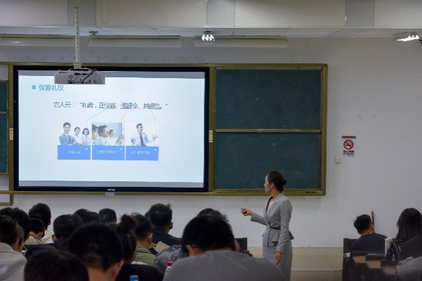讲座中,张老师结合自身多年工作经验,分别对专业知识、礼仪应用、仪容仪表、应变能力等多个方面进行了详细的讲解,强调在用人单位招聘过程中面试礼仪的重要性,并指出在面试过程中着装、容貌、举止、言谈等需要注意的细节。的表现和存在问题进行讲解。在场同学纷纷表示收获满满,此次讲座在同学们热烈的掌声中结束。