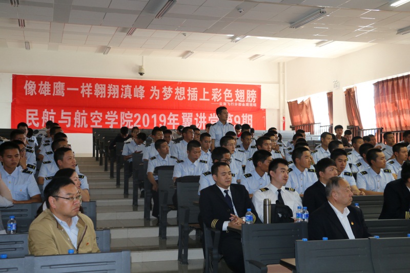 会上,金鹰班组组长步金峰介绍了中国民航行业发展概况、从事民航各领域人员素质要求,以及发展前景等,并结合自身经历,分享了飞行员成长历程,进一步让飞行技术专业对大好前景充满期待,对未来发展有了更全面、更清晰的认识,进一步坚定了理想信念,为实现中国梦、航空梦奠定了坚实的思想基础。在现场提问环节中,金鹰班组成员详细解答了学生在学习生活中可能遇到的困惑和疑虑,同时鼓励同学们要珍惜大学时光,努力学习、提高个人综合素质。