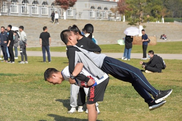 为增进同学之间的交流,香蕉视频 于11月14日14:00在公教楼前举办了第二届趣味运动会。我院学生积极报名参加,交通工程学院、医学院学生代表共100余人到场共同参与本次运动会。