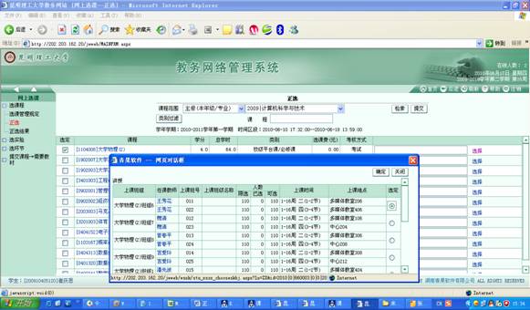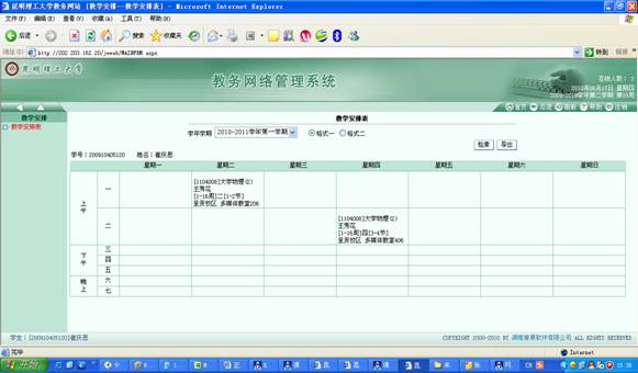(4) 完成上述操作即完成课程正选。并可以在“教学安排→教学安排表”中查看自己的课表。