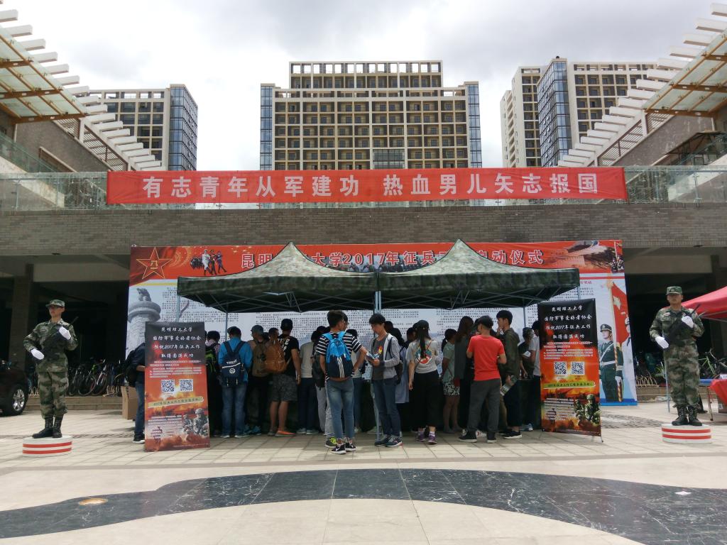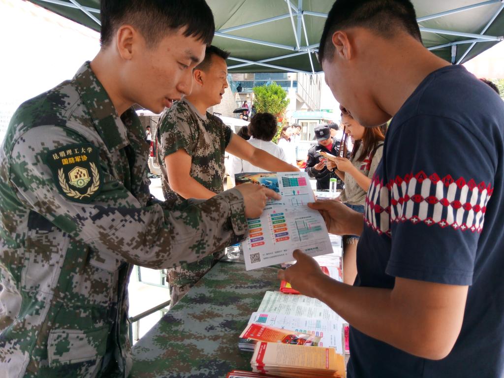 5月31日上午,香蕉视频 2017年征兵宣传暨现场咨询会在呈贡校区圆满完成。本次咨询会由学生工作部(处)联合呈贡区武装部共同组织开展,呈贡区武装部部长方良莅临现场指导工作,并与学校相关工作人员、退伍返学的士兵代表、昆工军协成员代表一起,共同进行征兵宣传。