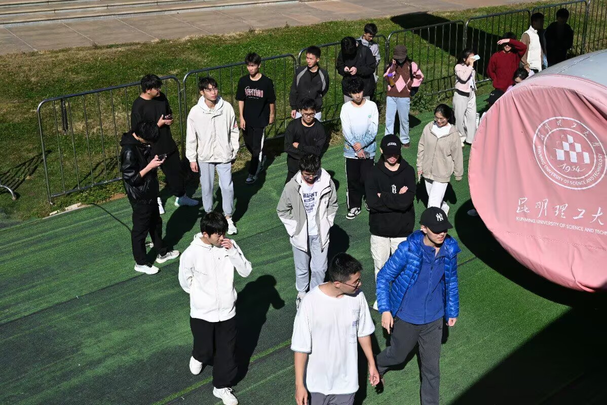 首先,我们由外到内、逐步深入的向同学们展示整架飞机的整体结构。由机头、机翼、发动机和机尾四个外观主要组成部分逐一讲解,将飞机整体外观更完全展示给同学们。紧接着,在了解到飞机整体轮廓后,我们对飞机进行了第一步深入体验,经过社团同学仔细讲解好构造以及安全注意事项后,让前来参观的同学有机会获得一次进入飞机的“肚子”——货舱的体验。最终来到同学们最期待的部分,走进大飞机内部,我们切身体会到了与乘坐飞机相比对于飞机内部更为细致的了解。携带好每个人登机牌我们出发万里长空。同学们机舱内依次等待,排队进入驾驶舱。面对复杂精密的操作设施,我们采取讲解配合实际操作的方式,让同学们在驾驶舱内拥有更直接的感受,我们的社团成员通过对不同零件功能的详细讲解,让同学们在最短时间内能够学会如何驾驶飞机。