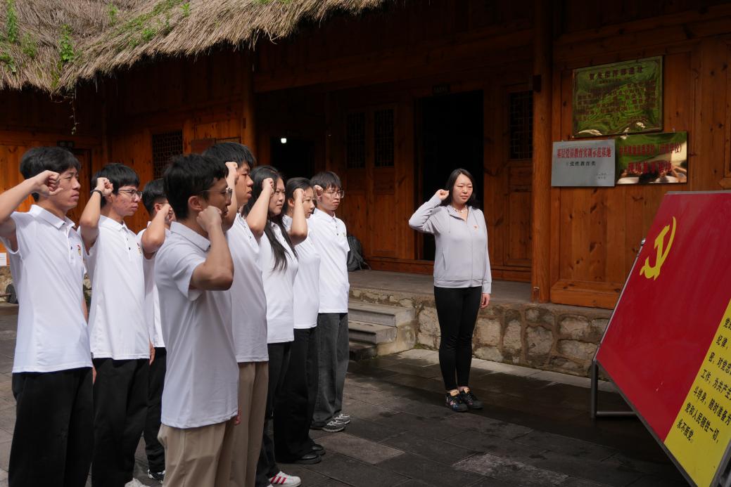 参观学习后,实践团成员们怀着无比激动的心情,在贺龙指挥部旧址前整齐列队,面向鲜红的党旗,庄严地重温入党誓词。“我志愿加入中国共产党……随时准备为党和人民牺牲一切,永不叛党。”铿锵有力的誓言在旧址上空回荡,既是对革命先烈的深切缅怀,也是新时代青年党员对党的无限忠诚和为共产主义事业奋斗终身的坚定信念的再次宣示。