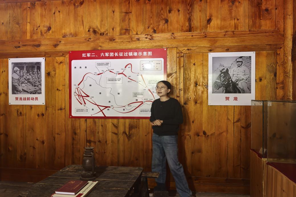 在巴溜村这片承载着厚重革命历史的土地上,在实践团成员的簇拥下,讲解员引领大家步入贺龙军团长昔日指挥作战的指挥部旧址一探究竟。斑驳的墙壁、简朴的陈设,无声地诉说着那段烽火连天的峥嵘岁月。讲解员以生动的语言和详实的历史资料,为同学们详细讲述了红二、六军团在贺龙、任弼时等领导人率领下,于1936年二三月间在乌蒙山区千里回旋,巧妙摆脱国民党军的围追堵截的“乌蒙回旋战”光辉历程。通过讲解员的细致描述和旧址内陈列的行军路线图,那段惊心动魄、体现红军英勇智慧的战略转移过程清晰地呈现在大家眼前。红军将士们那份不畏艰难险阻、浴血奋战的英勇革命精神,如同烈火般深深烙印在了每一位在场成员的心中。