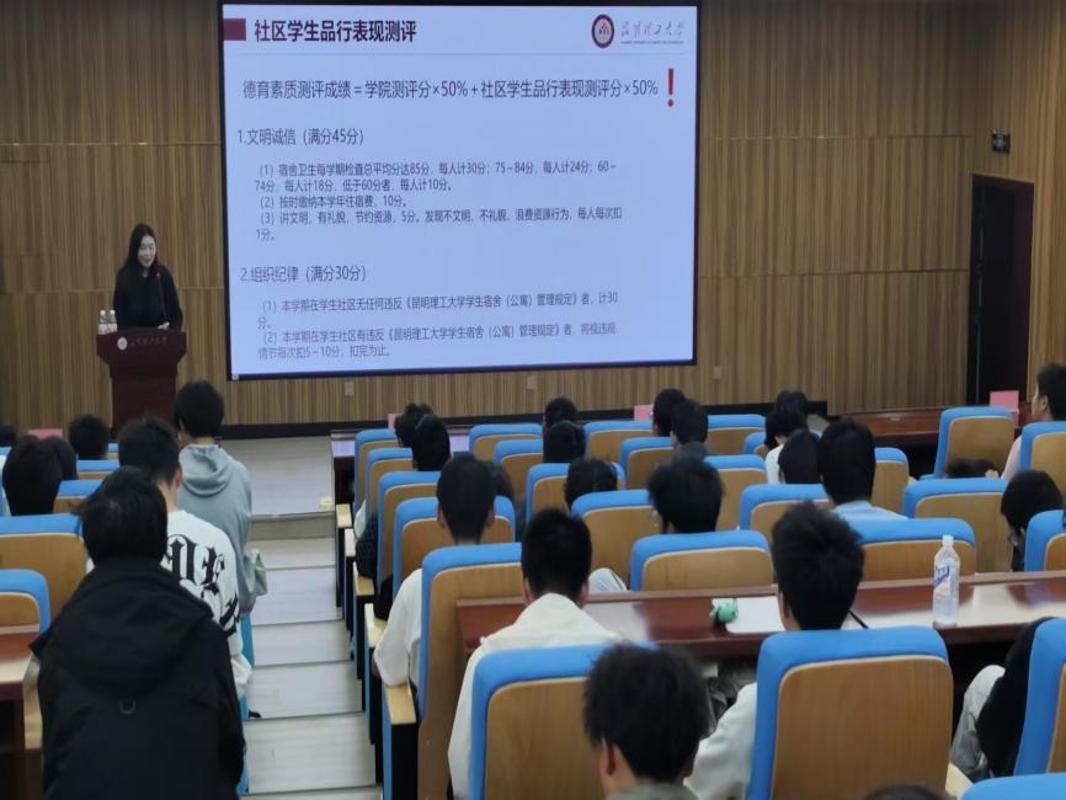 学生社区安全工作负责人李柯莹老师结合典型案例,开展了学生社区安全专题宣贯,重点强调了宿舍用电安全、消防安全、卫生管理及社区测评等关键事项,要求同学们自觉遵守规章制度,共同营造一个整洁、有序、安全的住宿环境,为学业发展提供坚实保障。