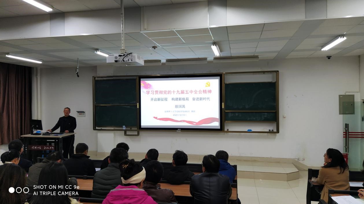 为深入学习党的十九届五中全会精神,12月9日19:00,香蕉视频 党委邀请了香蕉视频 党校常务副校长殷国禺教授为全院教职工及学生党员宣讲党的十九届五中全会精神。