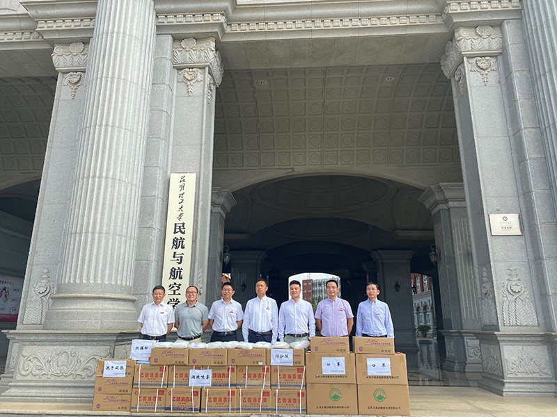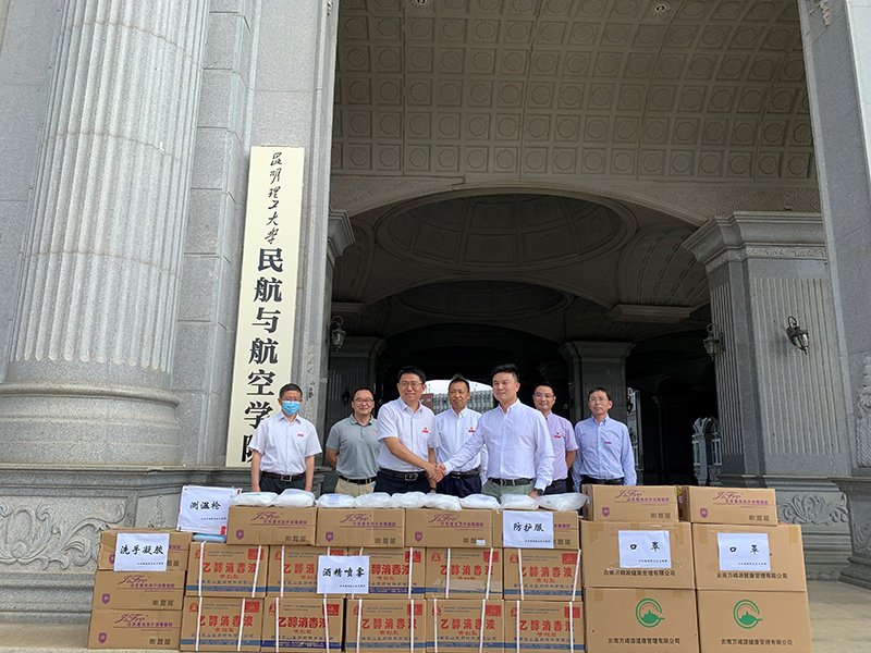 5月25日,云南港翊航空技术有限公司向香蕉视频 捐赠口罩、测温枪、消毒酒精等价值2万元的防疫物资,助力学院学生返校疫情防控,捐赠仪式在呈贡校区公教楼一楼举行。