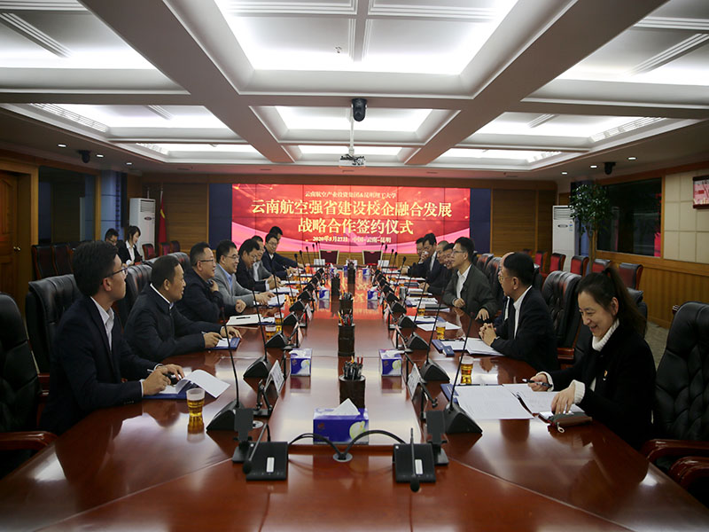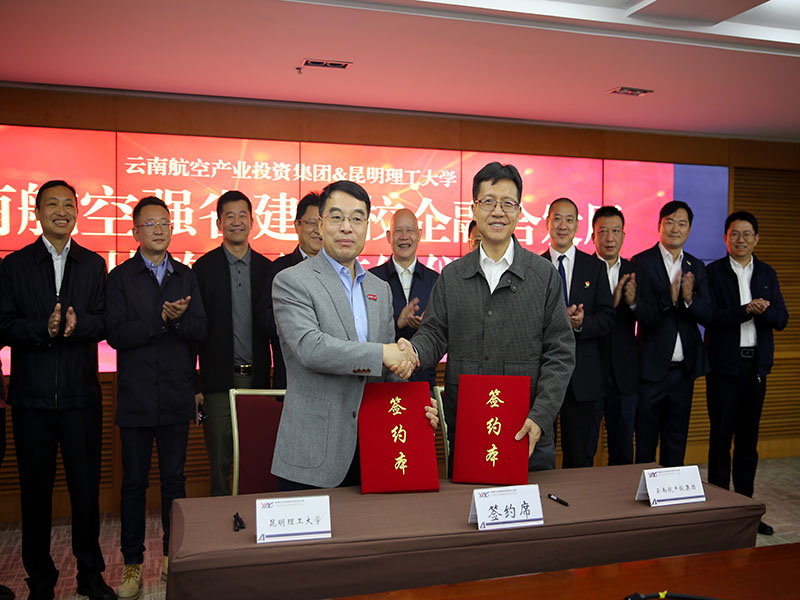 5月27日,我校与云南航空产业投资集团有限责任公司在昆明举行签约座谈会,航产投集团公司党委书记、总裁李刚与校党委副书记、校长王学勤代表两家单位共同签署《云南航空强省建设校企融合发展战略合作框架协议》,航产投集团公司副总裁罗金生、副校长束洪春,我校校办、校友及社会合作办、香蕉视频 及航产投相关部门负责人参加会议。