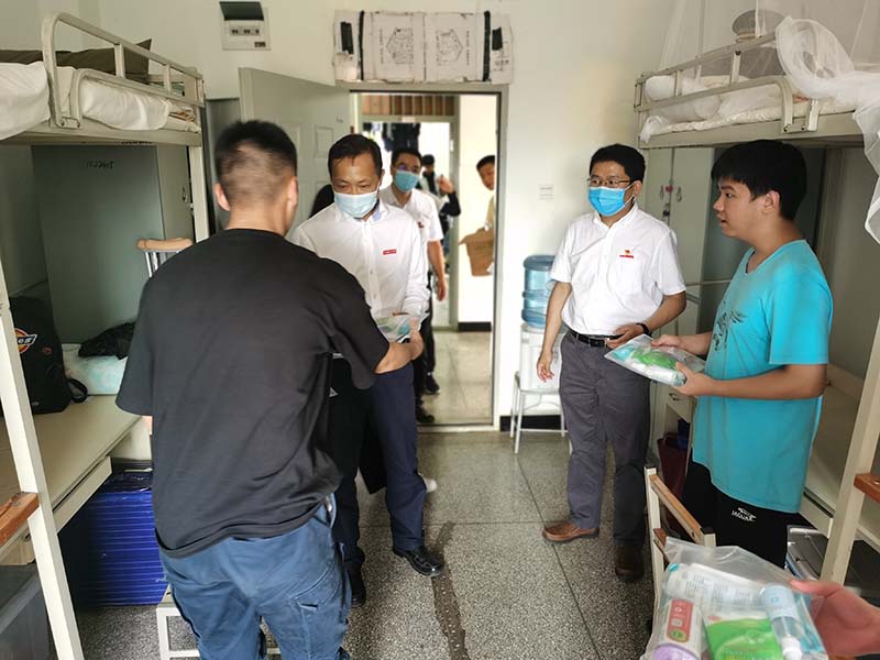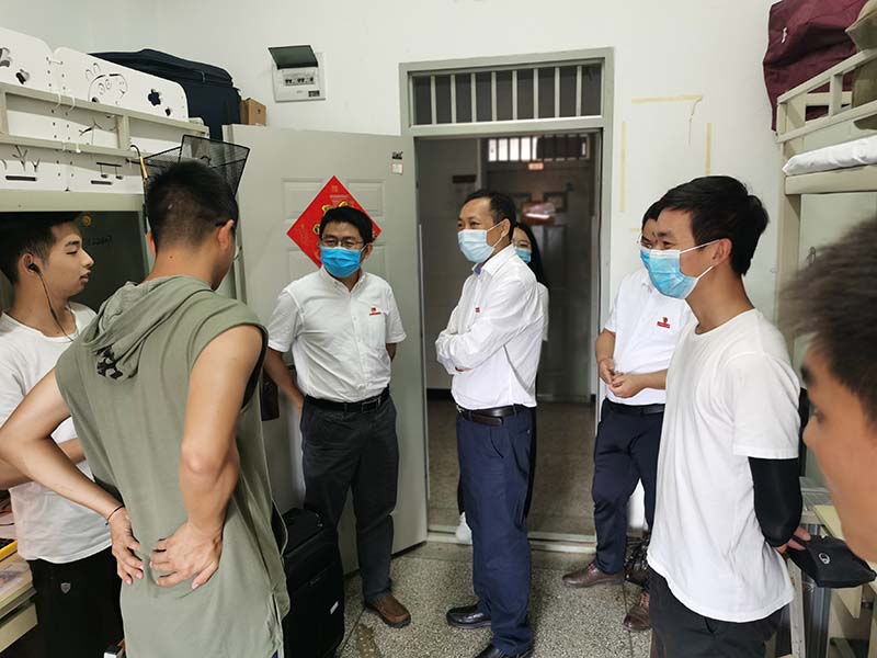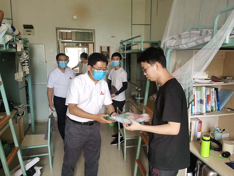6月4日,香蕉视频 迎来了首批返校学生。学院党委书记赵耕、院长吴建德、党委副书记周业林、辅导员深入学生宿舍看望返校学生,并向学生发放学院精心准备的防疫健康包。