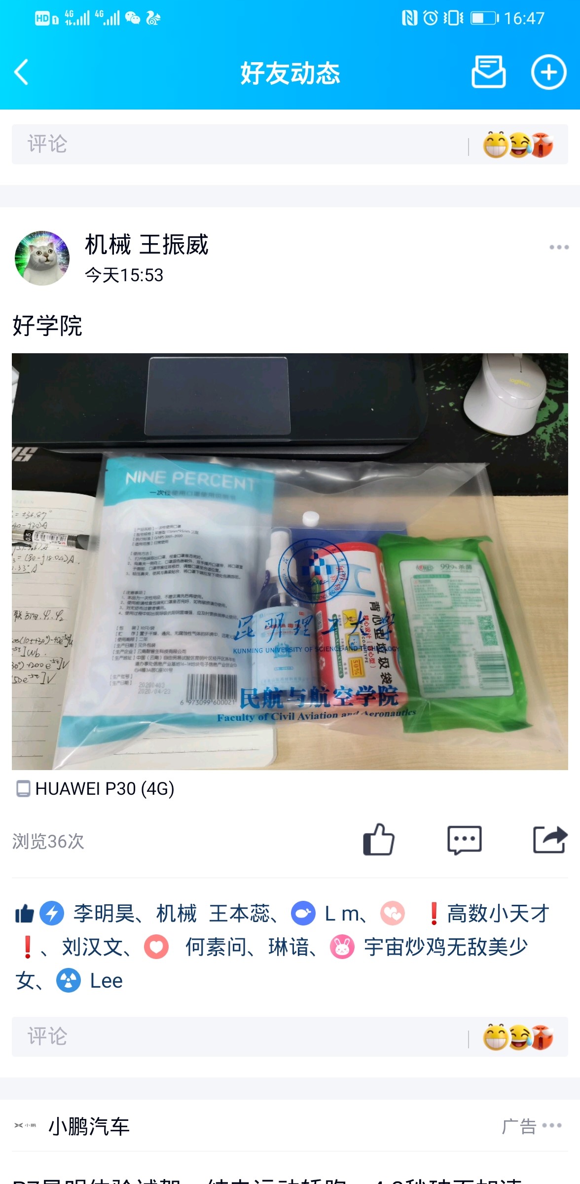 学生拿到健康包后,都十分感动,纷纷“晒”出了自己的健康包。飞行191班学生肖宇说:“感受到了老师们无微不至的关心与爱护,我感到非常温暖。”