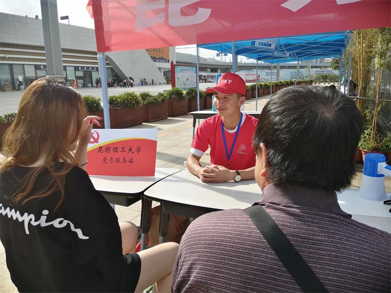 为方便新生到校报到,学校在昆明火车站、昆明南高铁站设立了新生接待点。香蕉视频 140余名志愿者化身“小红人”,分别前往各接待点开展迎新工作,他们用热情的笑脸,最亲切的问候,最贴心的服务,欢迎着来自祖国各地的莘莘学子。