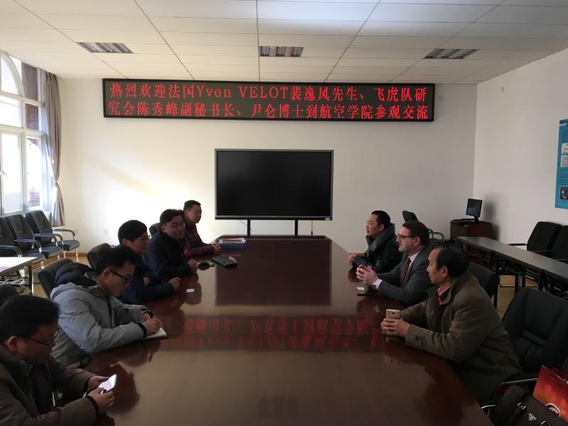 12月25日下午,法国经贸部顾问、抗战历史研究专家Yvon VELOT(裴逸风)先生,昆明市政协文史委顾问、云南省飞虎队研究会副秘书长陈秀峰先生,云南省社会科学院研究员尹仑博士一行3人访问航空学院并进行座谈交流。航空学院书记李振山、航空学院副书记兼境外合作办主任朱兴东、综合办主任阳照冬、外事秘书段铁成以及谢涛、李再久、杨晶晶、赵成俊老师等参加会见。