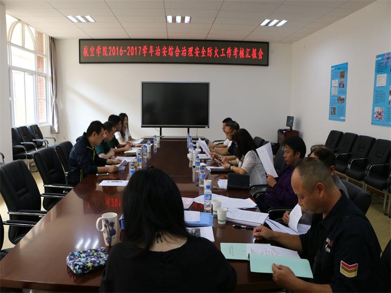 按照学校相关会议精神及通知要求,9月4日上午,学校第四检查考核组由后勤保障处处长、考核组组长张志新带队到航空学院检查考核2016-2017学年治安综合治理安全防火工作。受常务副院长沈颖刚委托,会议由院长助理付晓东主持,综合办主任阳照冬进行工作汇报,教务办主任朱兴东、实验实训中心主任熊曼辰参加考核工作会。