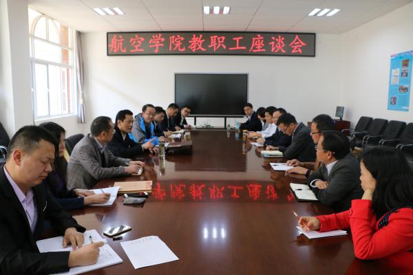 3月7日下午,航空学院教职工座谈会在335报告厅召开,学院全体教职工参加座谈,易健宏副校长出席会议并讲话,会议由副院长沈颖刚主持。