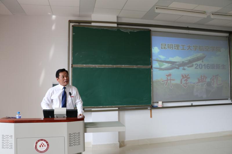易副校长在致辞中说:“老师们、同学们,今天的此时此刻,是一个庄严的时刻!也是一个欢聚的时刻!因为今天是航空学院的第一个开学典礼!”易副校长在讲话中强调:1、大学是人生事业的起点,大家只有通过正规的、专业的大学教育,才能成为从事某个专业的高素质人才,所以请各位同学一定要学好自己所选择的专业;2、大学是人生情感的孵化器,对于绝大多数同学来说,是第一次离开父母、离开家乡,大家以一种相对独立的方式来到了昆工航空学院,所以请各位同学要善待自己的同窗,因为他们将是你一生的好伙伴;3、大学是人生的理想定位器,你们在大学形成的理想,一定是值得你们一生追求和努力的方向,当你们人至中年时,你们心里一定还会澎湃着大学的理想,当你们老年时,大学时光一定会成为人生最美好的追忆。易副校长最后表示:希望同学们一定要珍惜自己的大学时光,学好专业!善待同学!珍惜大学!