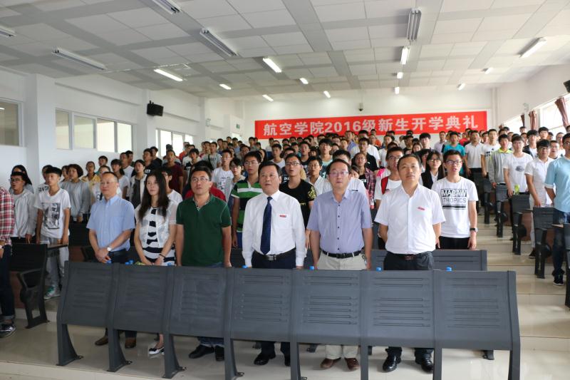 开学典礼开始前,首先举行了奏唱国歌仪式。接下来,刘增力副院长对参加开学典礼的领导及老师一一作了介绍,并代表学院对航空学院2016级全体新生表示热烈的欢迎。