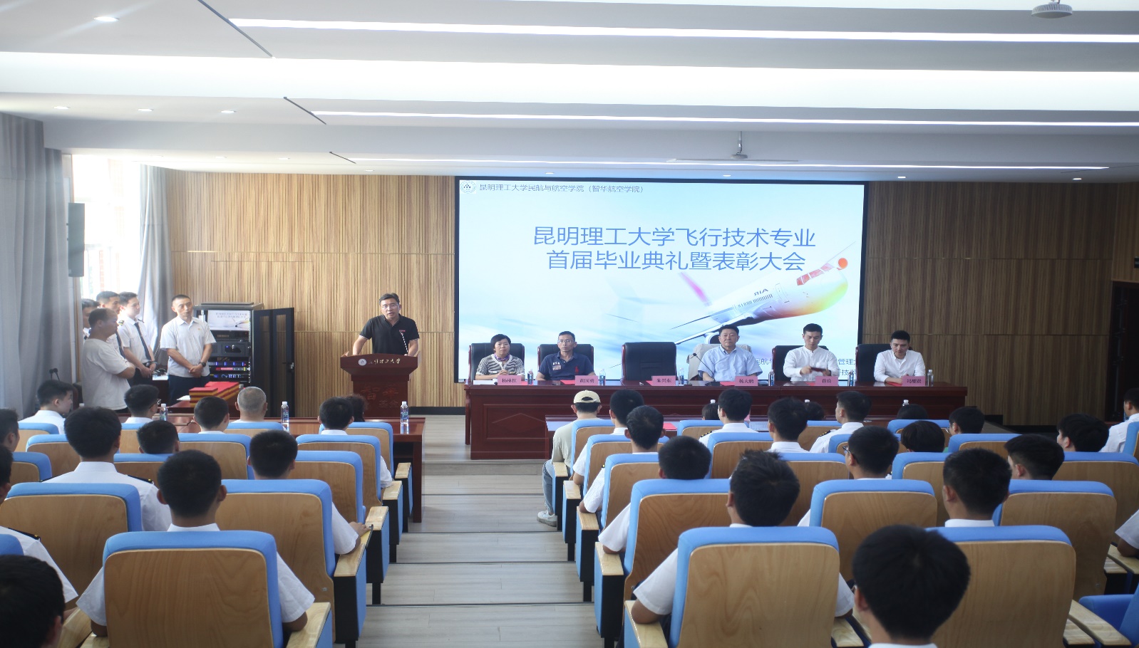 6月21日下午,香蕉视频 在公教楼344报告厅举行飞行技术专业首届毕业典礼暨表彰大会。学院党政领导、飞行系和科室负责人、飞行技术专业全体在校学生和毕业生、辅导员,以及毕业生家长代表共计150余人参加。