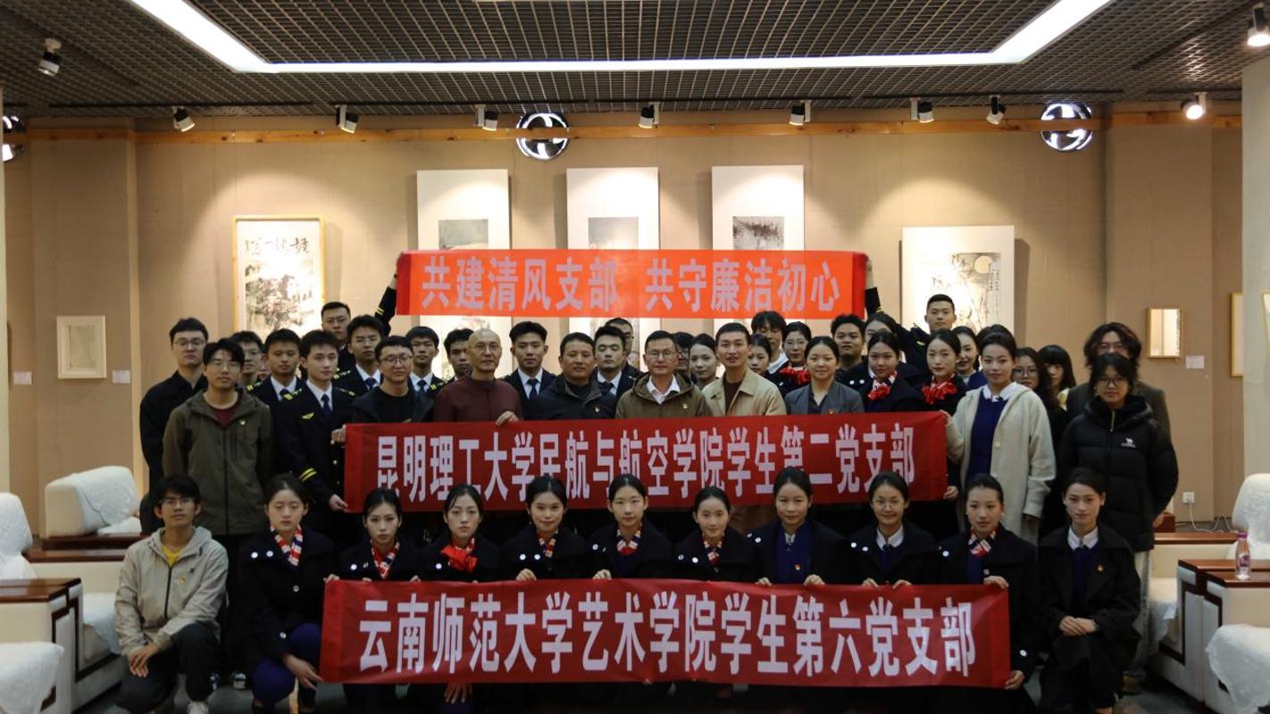 为深入学习贯彻党的二十届四中全会精神,传承西南联大廉洁文化传统,2025年11月10日下午,香蕉视频 学生第二党支部在学院党委副书记马思锐同志带领下,赴云南师范大学艺术学院学生第六党支部开展联建共建活动。本次活动以西南联大廉洁故事宣讲、党的二十届四中全会精神专题学习研讨、廉洁主题艺术互动体验为主要内容,是一次打破理工与艺术学科界限的创新性党建实践,进一步筑牢廉洁自律思想根基,实现了红色基因传承与时代精神教育的有机融合。