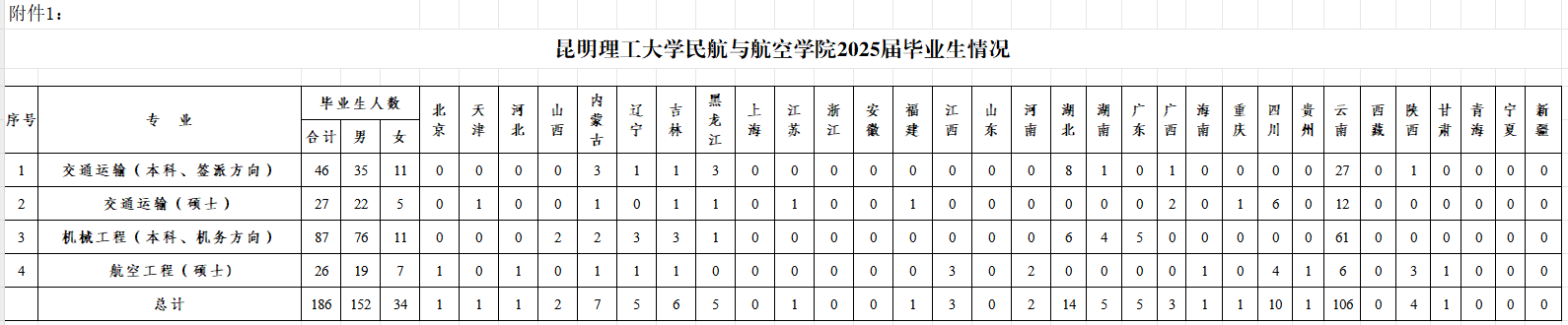 2025年,我院将有航空交通运输专业、航空工程专业硕士毕业生和机械工程(机务方向)、交通运输(签派方向)本科生毕业预计180余人。生源分布情况见附件1,人才培养目标及主干课程见附件2。