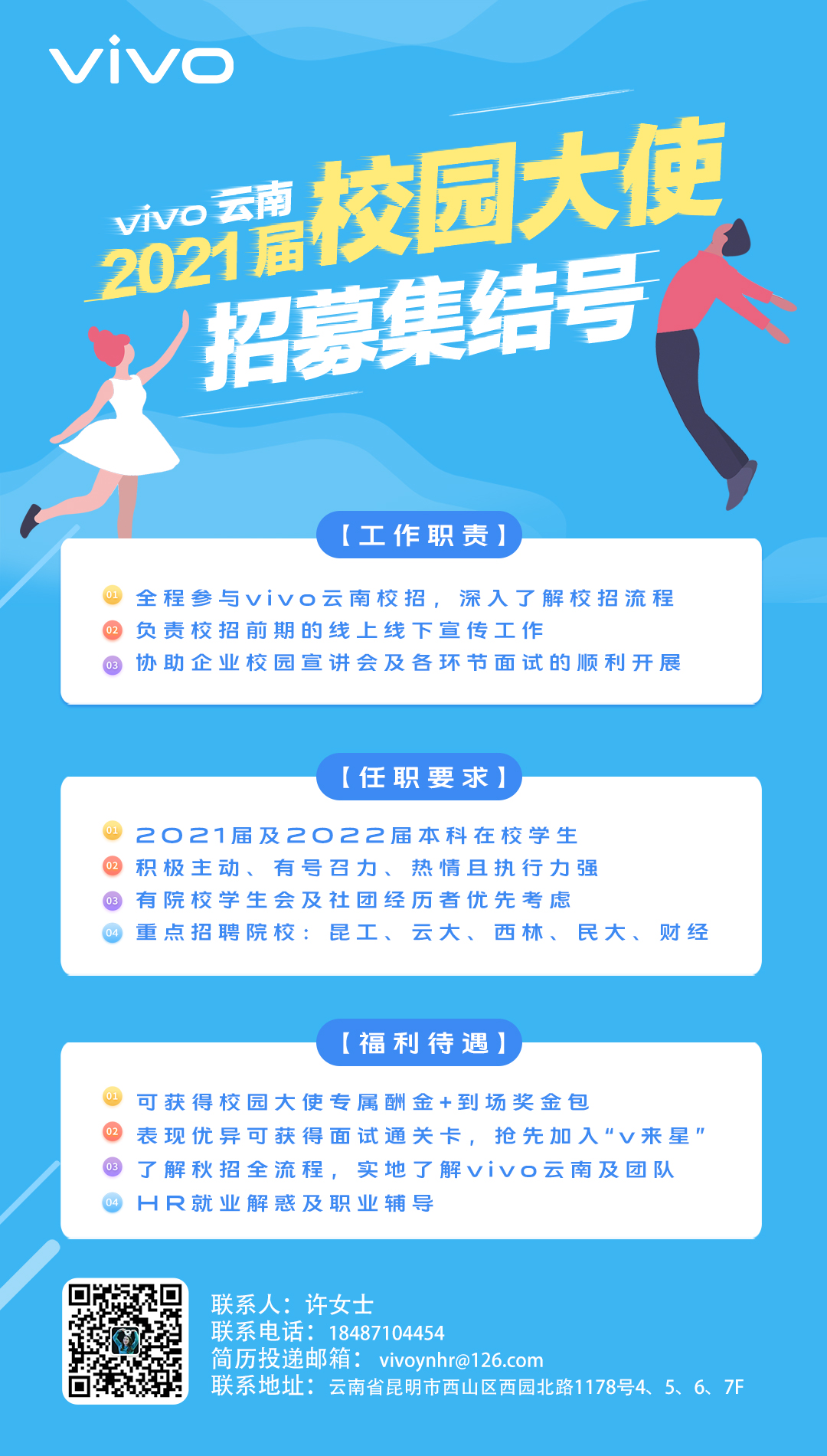 vivo 是一家专注联接产业生态,为追求科技与时尚的前端用户,提供智慧终端产品和服务的科技公司。我们致力于整合产业创新能力,并拥有完善的自研自产体系,在中国东莞,深圳,南京,北京,杭州,美国圣地亚哥设有研发中心,研发范围包括 5G、人工智能、拍照、设计等众多消费级前沿领域。2014 年 vivo 携手各省公司进军海外市场,目前海外业务覆盖全球东南亚、南亚、中东非、亚太及欧洲 5 大营销区,30 多个国家和地区。2018 年,vivo 出货量超过 1 亿台,累计活跃用户数超 3 亿,位列全球 TOP5,年平均销量增速达 62%,市场表现极其亮眼。vivo 旗下终端覆盖全细分市场,共分为:NEX,vivo, iQOO三个子品牌,其中 NEX 致力于打造时尚影像科技,iQOO 致力于实现强悍性能。vivo 通过智慧终端,为用户带来科技和时尚体验,在消费端不断追求卓越,不断主导技术革新。vivo 云南(云南轩宇科技有限公司原名步步高通信技术有限公司)是一家以智能终端和智慧服务为核心的平台型科技公司,成立于 2008 年 7 月 7 日,是 vivo 智能手机云南省唯一授权一级公司,公司总部坐落于四季如春的春城—昆明,平行六家海外公司(泰国/缅甸/越南/老挝/柬埔寨/哥伦比亚)及多家市级分公司,市级分公司全版图覆盖云南全省 16 个地州,129 个县市。长期保持市场份额前 2 领军地位。企业飞速发展的同时,更注重人才管理及发展,vivo 也有着和谐的工作氛围及年轻化高素质职业经理人团队,强调做事,淡化层级观念,给予员工足够充分开放的平台和自由发挥的空间,vivo 始终恪守本分、诚信的企业核心价值观,致力于建立高度风格化的强大品牌,为消费者提供具有高度行业差异化的产品与服务,成为更健康更长久的世界一流企业!目前省公司在职员工数 100 余人,二级代理商管理团队人数 700 余人,全省超过 3500 名专属品牌导购人员。