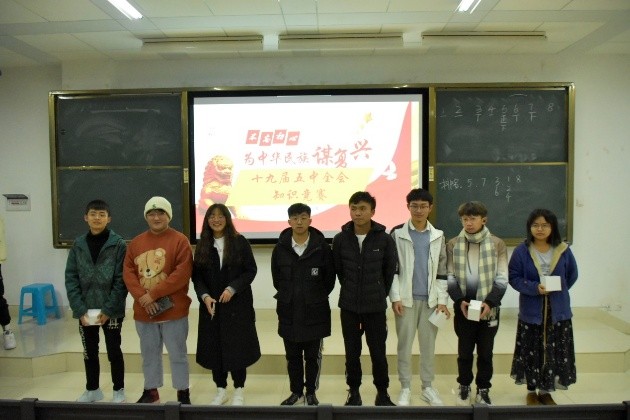 本次知识竞赛以党的十九届五中全会精神要点为主要内容, 旨在通过比赛让全会精神走近广大青年,激发党员和团员青年的先进性和光荣感,理解新时代我国发展的战略走向,激发接续奋斗的历史使命和责任担当。赛前,广大学生积极报名,参赛人员通过抽签分成4支参赛队伍展开比拼。比赛现场,全体参赛人员热情高涨,积极抢答。经过激烈比拼,按两个环节总成绩进行排名,最终8名同学脱颖而出,取得优秀的成绩。